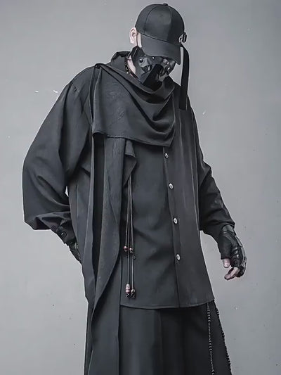 まるで魔法使いのマントを一体化させたかのような、独創的なデザインのシャツである。