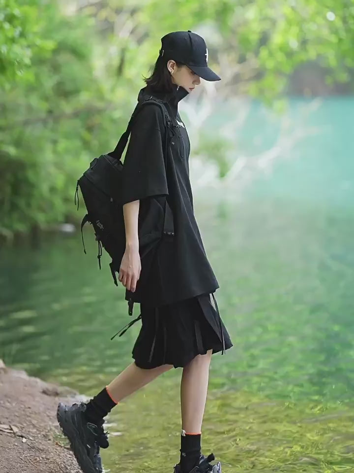最大の特徴は、武装された首元を演出する高いスタンドカラーと、胸元を貫くダブルジッパー。それはまるで、特殊機関のエージェントが身に纏う制服のようだ。シルエットは身体のラインを完全に秘匿するオーバースタイルであり、中央を走る一本のステッチが、無機質で構築的な美しさを際立たせる。